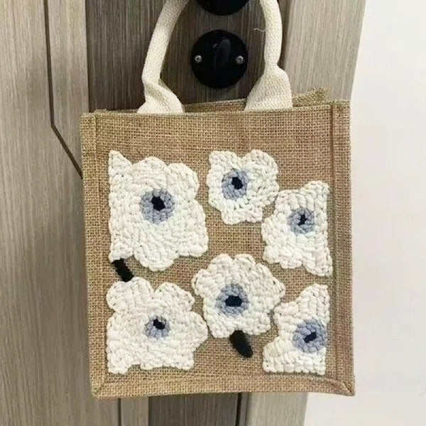 Serene Blooms Punch Needle Jute Bag
